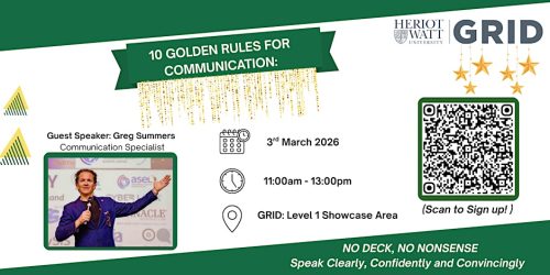 Welcome to 10 Golden Rules for Improving Your Communication. Join us at GRID, Heriot‑Watt University, on 3 March 2026 at 11:00 AM for a focused, practical session designed to elevate how you communicate.